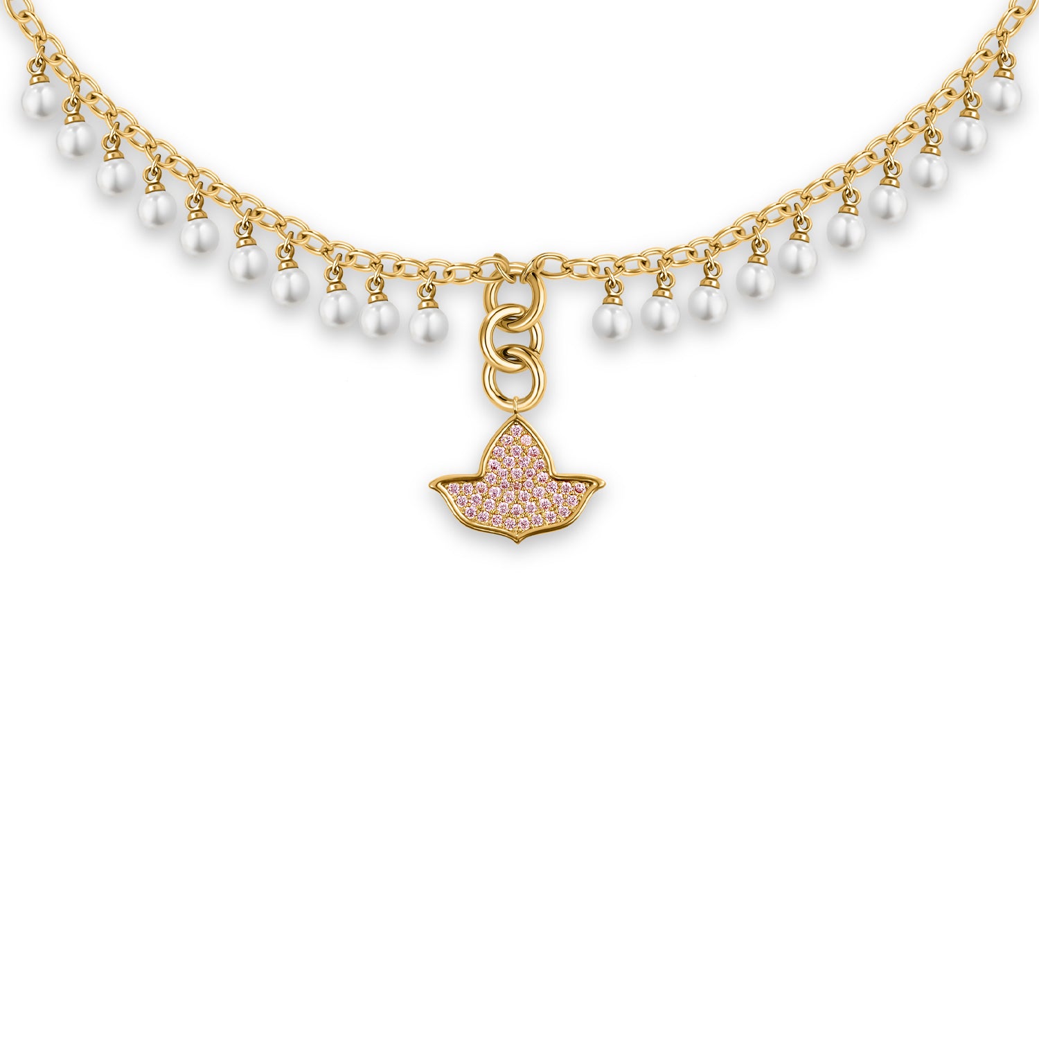 20 Pearls Ivy Loops Necklace – a sophisticated piece that combines tradition with sparkle. This necklace features 20 replica pearls with three elegantly hanging loops that beautifully connect to the Ivy Leaf, filled with radiant pink CZ crystals. Whether you're attending a formal event or adding a touch of glamour to your everyday attire, this piece is a stunning way to celebrate AKA with style and grace.
