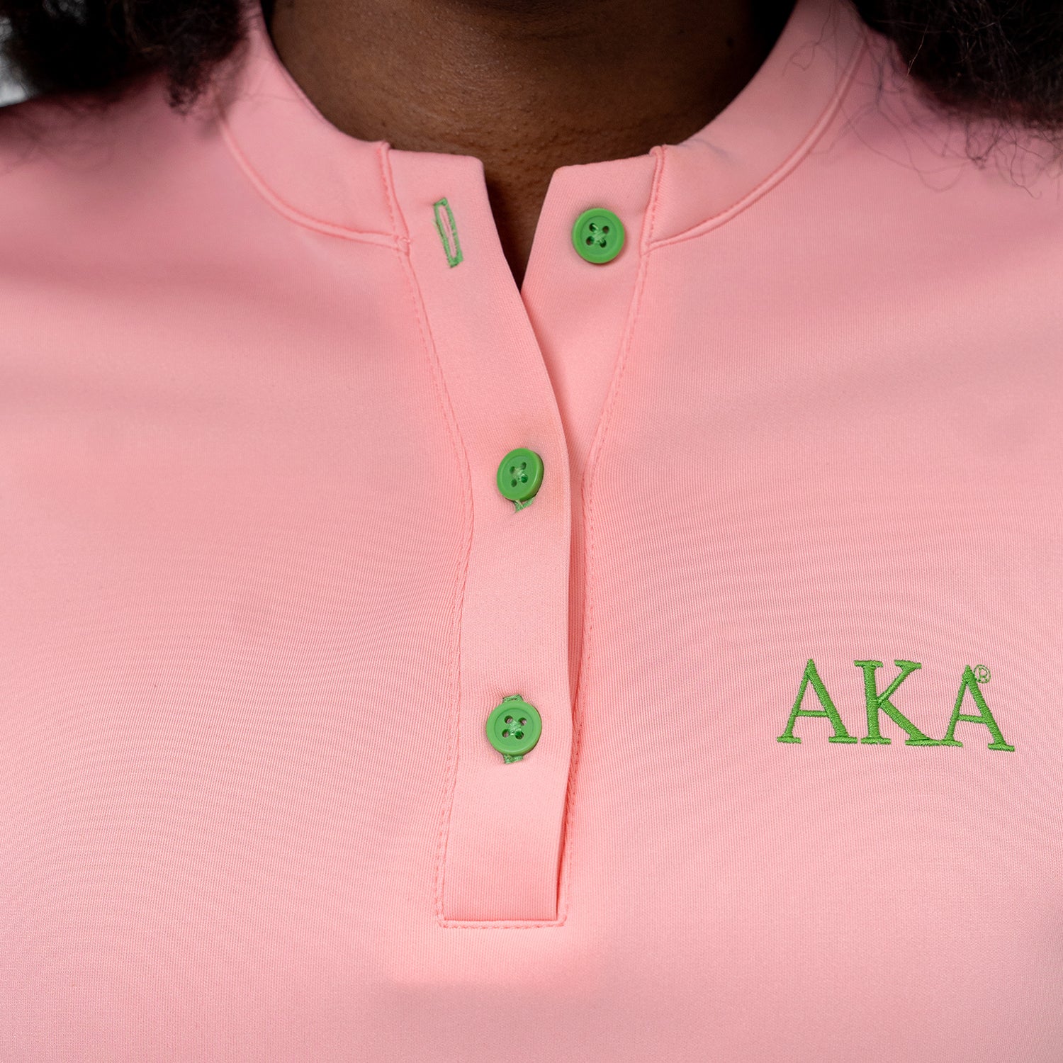 The Salmon Street Jumpsuit blends feminine polish with bold, street‑ready energy. Cut in a rich salmon pink with green accents, this one‑piece delivers a clean, modern silhouette that moves effortlessly. Its standout feature — “Alpha Kappa Alpha” signature embossed down the center left leg — creates a striking vertical line that feels powerful but understated in its look. The green‑trimmed sleeves, embroidered AKA left chest detailing, and adjustable waist tie add layers of refinement, while the butter soft, comfortable fabric keeps the look easy and wearable. Styled with heels, flats or sneakers, this jumpsuit is a confident statement piece for women who want comfort, color, and sorority pride wrapped into one elevated design.